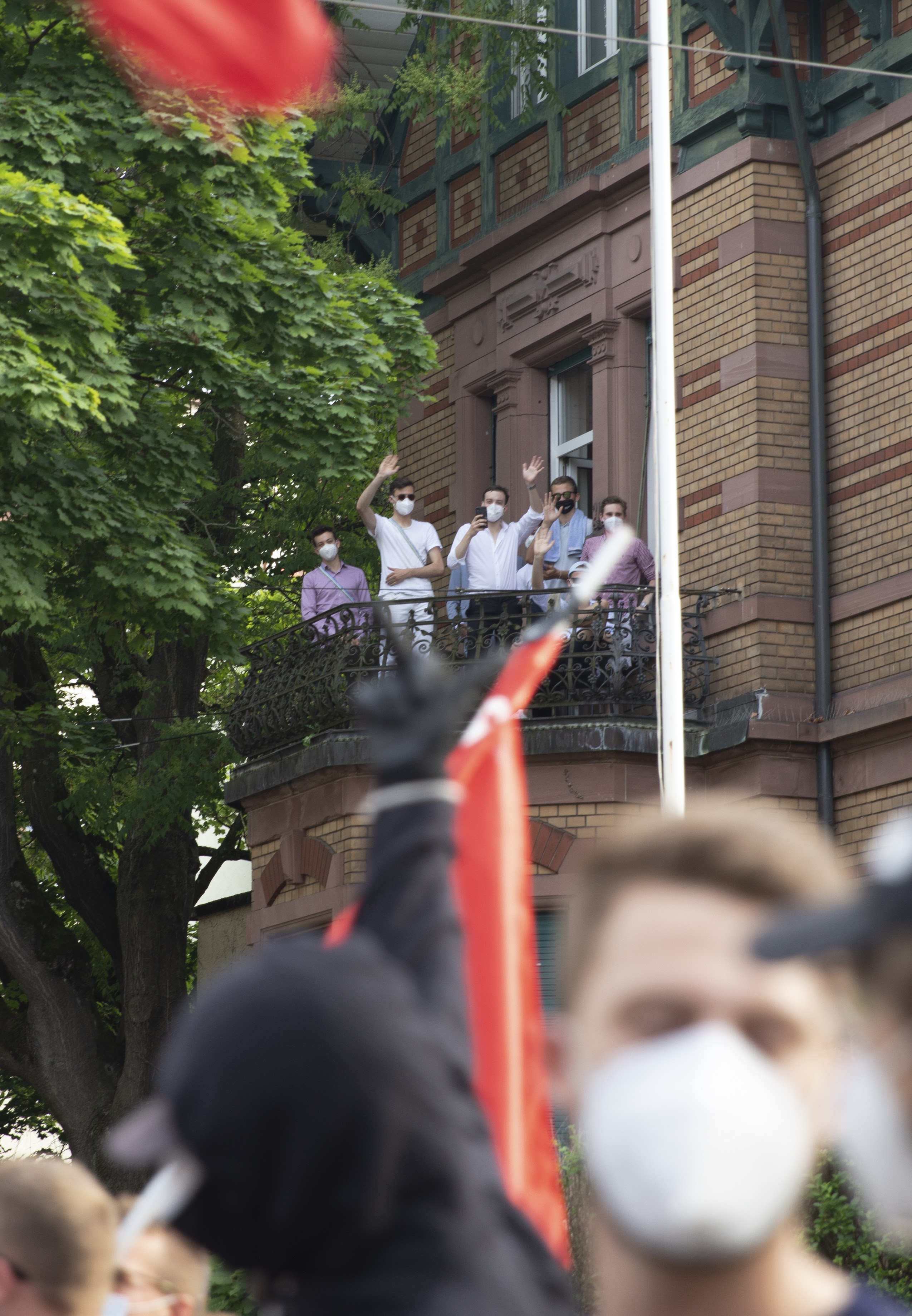 Nach der Zwischenkundgebung bewegte sich die Demonstration zum Wohnort Robert Hagermans in der Langemarckstraße. Auf dem Weg wurde Pyro gezündet und die Nachbar:innenschaft mittels Parolen auf den braunen Messerstecher aufmerksam gemacht. Im Anschluss an den nächsten Halt brachte die Polizei den Demonstrationszug zum Stehen und die Einsatzkräfte zogen ihre Helme auf. Es sei Pyrotechnik in ihre Richtung geworfen worden, so die Begründung. Auch später, kurz vor der Merzhauser Str. brachte die Polizei die Demonstration zum Stillstand. Diesmal gab sie an, dass keine Absprachen über die weitere Route getroffen worden seien. Nach weiteren Gesprächen ließen die Polizei-Einsatzkräfte die Demonstration gewähren.