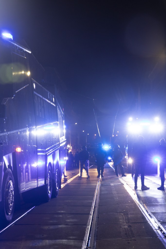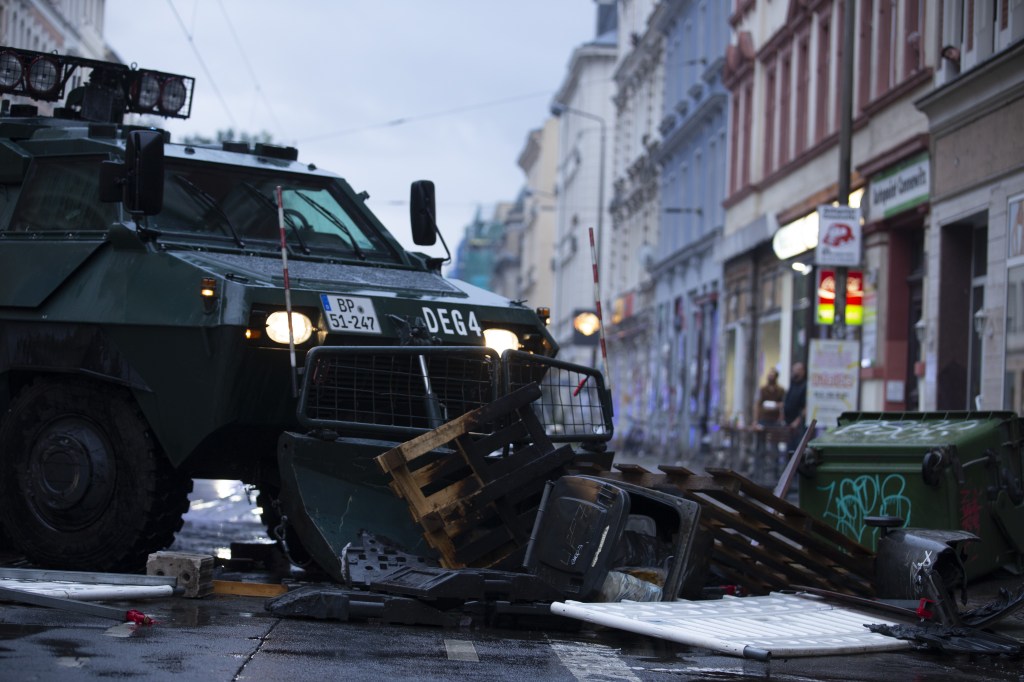 Etwas rituell wirkten die Szenen, die sich im Anschluss abspielten, denn der Tag war ja nicht vorbei. Nach der Auflösung der Bündnisdemo verblieben hunderte Antifaschistinnen in Connewitz und bauten Barrikaden in der Wilhelm-Heinze-Straße auf, die dann auch entzündet wurden. Die Polizeikräfte wurden mit Steinen angegriffen, die wiederum mit vier Wasserwerfern, einem Räumpanzer und mehreren Hundertschaften gegen Autonome, aber auch gegen Unbeteiligte, Anwohnerinnen und Journalist*innen vorgingen. Die Polizei versetzte aufgrund kleinerer Straftaten einen ganzen Stadtteil für mehrere Stunden in einen Ausnahmezustand. Erst gegen 21:30 verließ das Großaufgebot den Leipziger Süden endgültig und es kehrte Ruhe ein.
