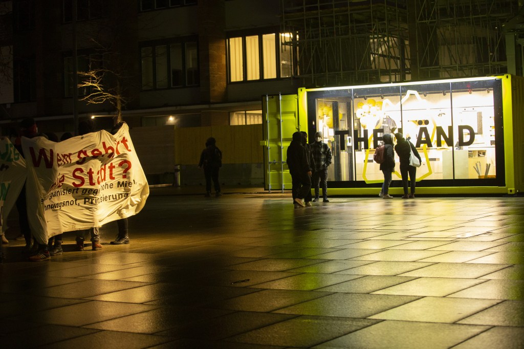 Nach der Auftaktkundgebung auf dem Rathausplatz zog der laute Protestzug über die Kaiser-Joseph-Straße und die Rempartstraße in die Gartenstraße, wo, nach einem Halt am Bertoldsbrunnen, die zweite Zwischenkundgebung stattfand. Nach einer Rede und wütenden Parolen betraten ein paar Demonstrantinnen das Gelände der abgerissenen Gebäude. Nachdem die absperrenden Bauzäune umgeworfen wurden stürmte die Polizei das Gelände und schubste verbliebende Linke zurück in die Demonstration. Die Beamtinnen zogen ihre Helme auf und wirkten aggressiv. Polizei-Einsatzleiter Reichenbach verkündete über eine Lautsprecherdurchsage, der Aufzug würde zunehmend „aufrührerischen Charakter“ annehmen.