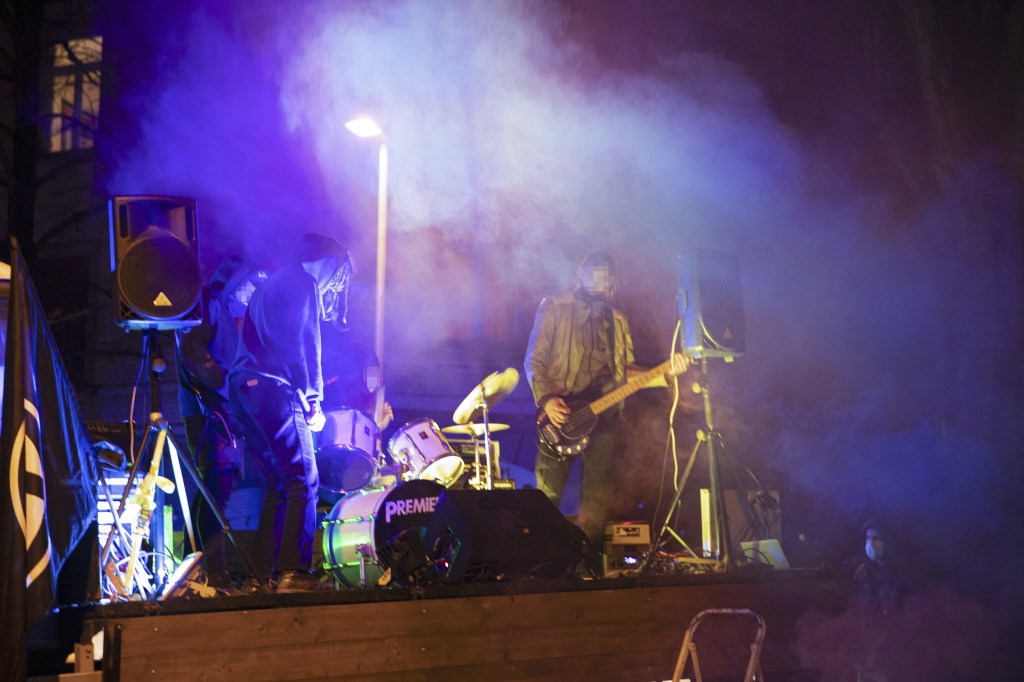 Zwischen den Kundgebungen spielte eine Liveband Punkrockeinlagen. Durch Parolen gegen Repression und durch Feuerwerk wurde während der Versammlung auf sich aufmerksam gemacht. Immer wieder waren Rufe aus dem Inneren des Knastes zu hören, die die Demonstrant*innen mit weiteren Parolen beantworteten.