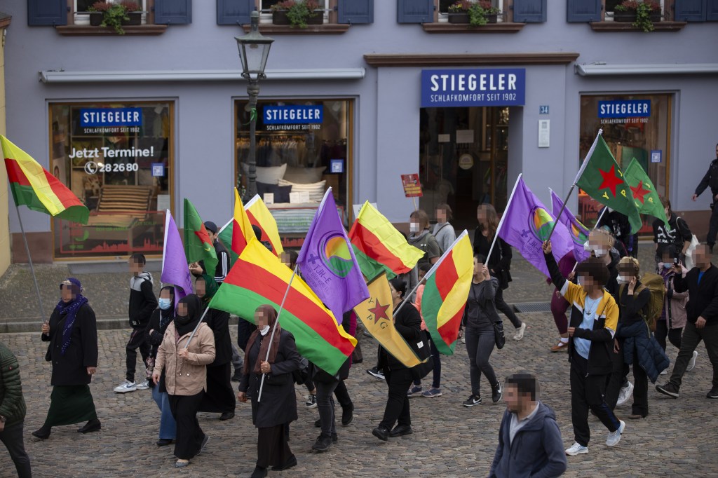 In den frühen Abendstunden des vergangenen Samsatg, den 23.04.22, demonstrierte eine niedrige dreistellige Anzahl an Menschen in Freiburg gegen den jüngsten Angriff der Türkei auf kurdische Gebiete.